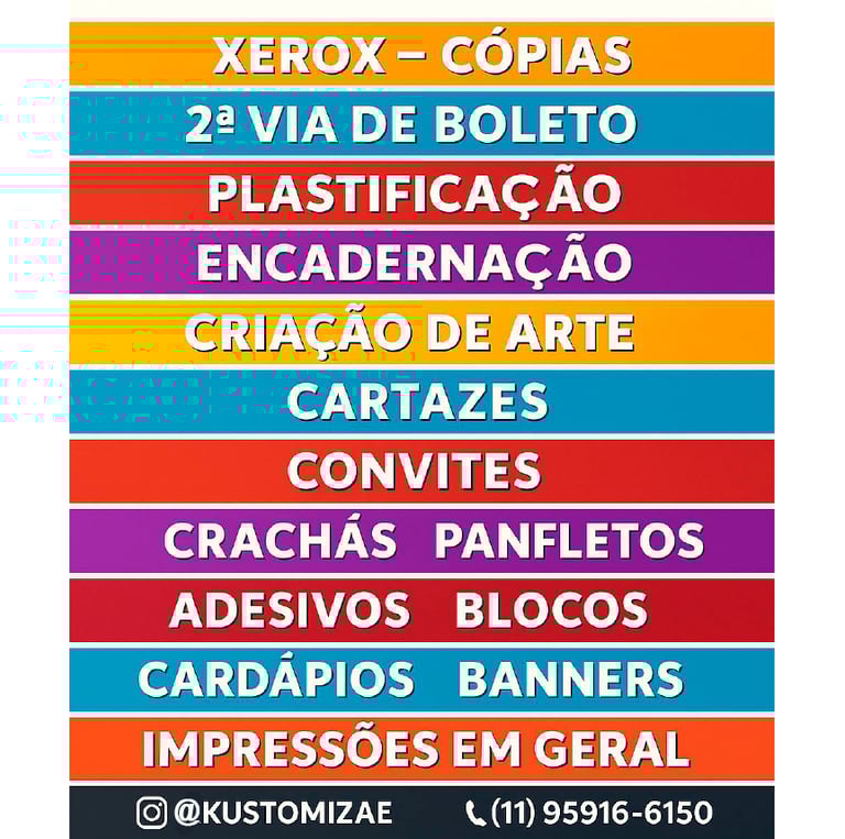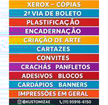 Na Kustomizaê!, oferecemos serviços gráficos rápidos e personalizados, atendendo suas necessidades com qualidade, desde impressões até brindes sublimados, tudo para encantar seus clientes em São Paulo.